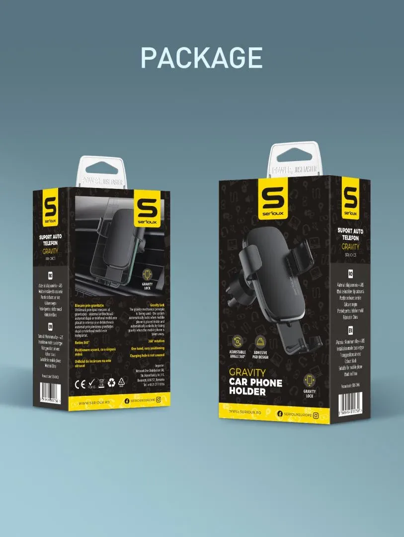Suport auto telefon Gravity Serioux CH03, Material: ABS+ aluminium, mod