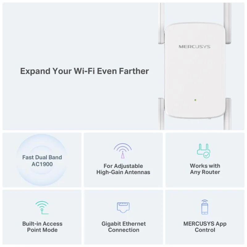 Wi-Fi Range Extender Mercusys AC1900 ME50G; Dual-Band, Standarde Wireless: