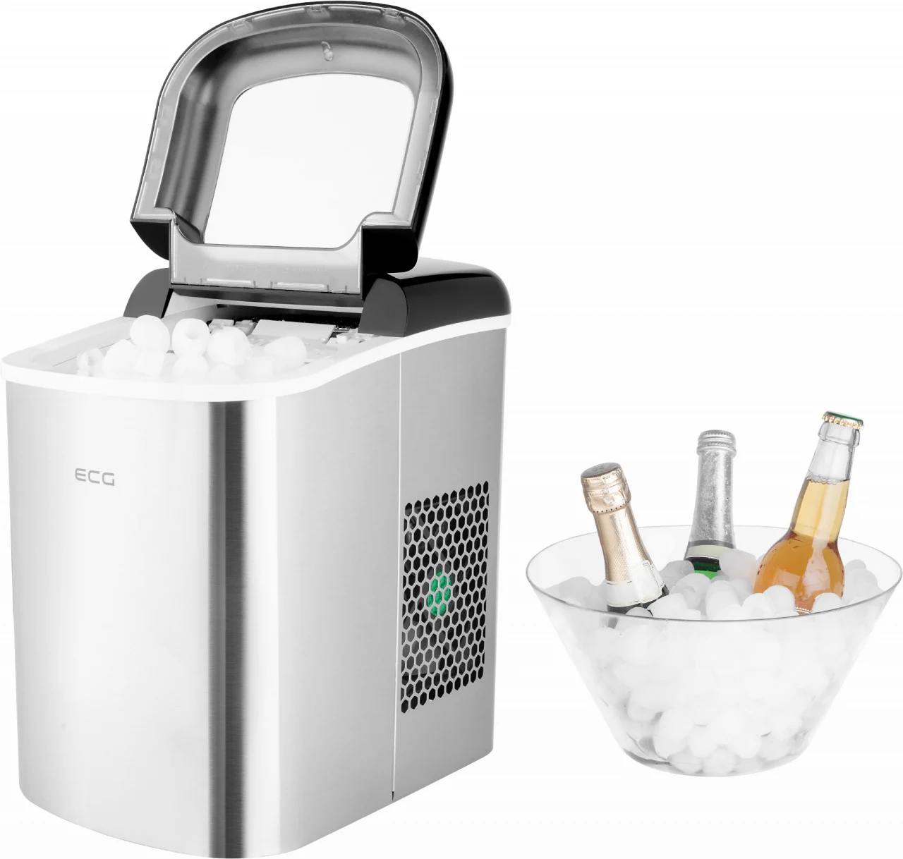 Aparat de facut cuburi de gheata ECG ICM 1253 Iceman, rezervor 2 litri, 120 W, otel inoxidabil