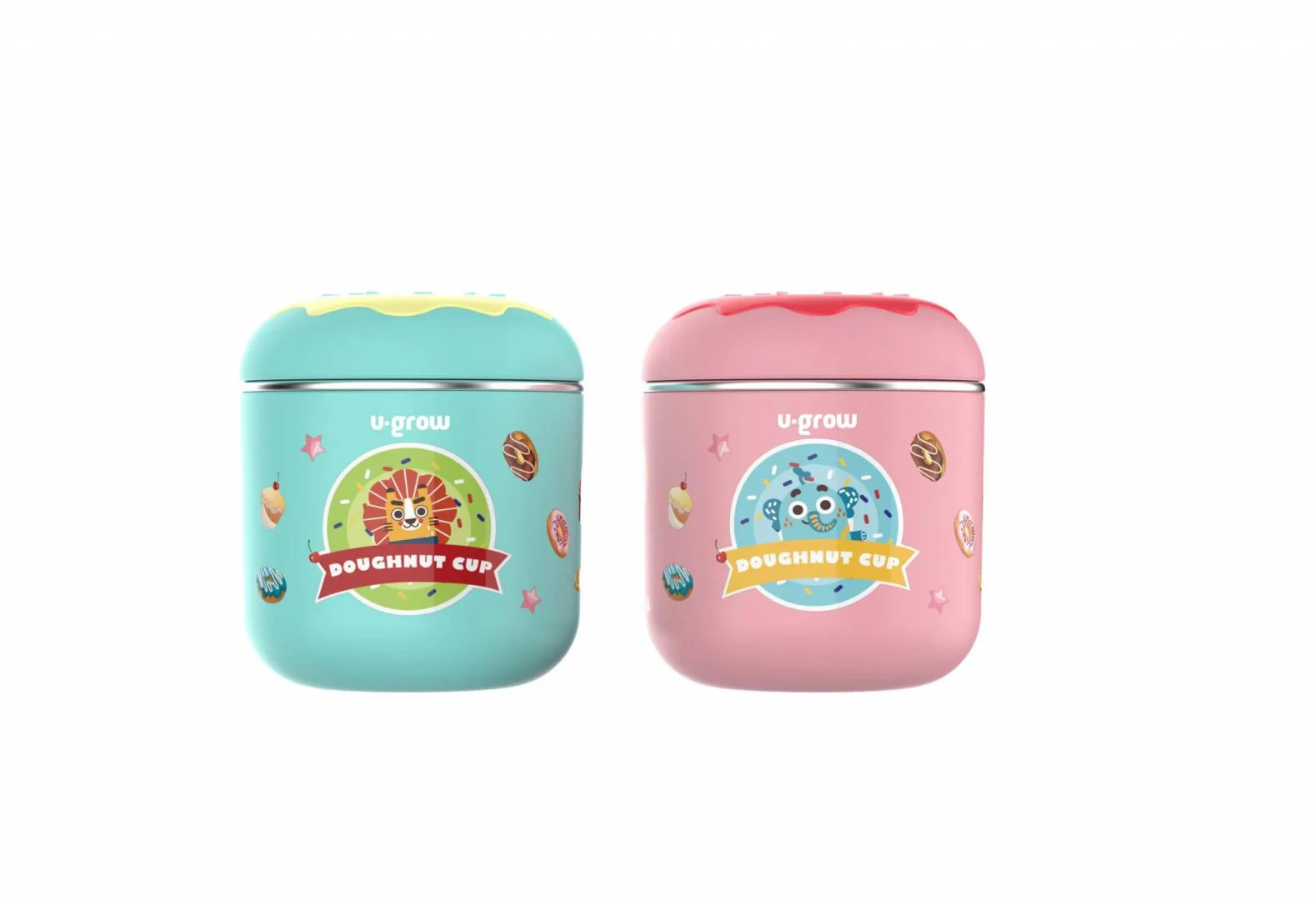 Cana termos cu capac roz, 300ml, U-Grow