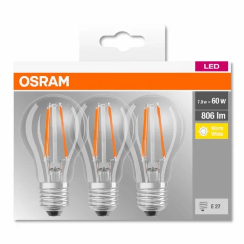 3 Becuri LED Osram Base Classic A, E27, 7W (60W),