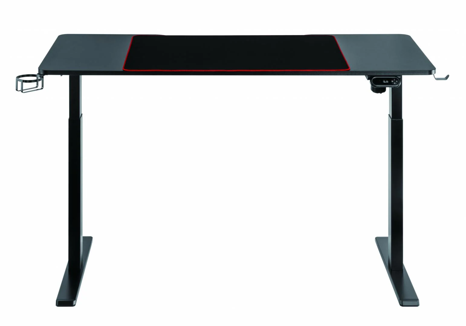 Birou gaming electric Serioux Elysium, dimensiuni: 1400x600x730mm, greutate suportata: 60 kg, reglare electrica pe inaltime inaltime ajustabila: 750 – 1210 mm, putere 100~240V, max. Viteza: 25 mm/s, 1 mouse Pad inclus, suport casti, suport cana/pahar, Banda LED RGB