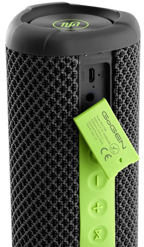 Putere 2 x 5 W Redare Streaming Bluetooth V4.2 fara fir Intrare analogica AUX IN: 3,5 mm Functie TWS (True Wireless Stereo) – puteti asocia doua aparate (stereo) Baterie reincarcabila incorporata 3,7 V / 2500 mAh Comunicatii mobile (preluare apeluri telefonice) Timp de functionare dupa o incarcare completa: 11,5 h (la 60% volum) Gama de frecventa: 100 Hz – 18 kHz Rezistenta in contactul cu apa IPX 7 – rezistent la apa, stropire, ploaie, perfect pentru plaja, piscina, barca si mai multe activitati in aer liber Raza de operare Bluetooth: 10 metri Cablu de incarcare micro USB si cablu AUX Culoare: negru cu verde Bucurati-va de muzica oriunde va aflati Acum poti asculta muzica ta preferata oriunde. Boxa portabila GoGEN BS270B ofera performante excelente – un sunet clar si o durata lunga de viata a bateriei incorporate. In plus, boxa are o forma speciala, astfel incat sunetul sa fie redat uniform. Sarbatoriti si bucurati-va de melodiile preferate in confortul casei, in gradina, la picnic, in parc sau intr-o plimbare lunga cu masina. Veti aprecia aparatul si atunci cand faceti exercitii in aer liber. Putere mare GoGEN BS270B ofera o putere muzicala de 10 W , care este asigurata de doua difuzoare incorporate de 5 W fiecare. Dispozitivul este usor si intuitiv de utilizat folosind butoanele colorate. Continutul muzical este redat de difuzoarele incorporate prin tehnologia fara fir Bluetooth® . Poate fi imperecheat cu usurinta si rapid cu orice telefon mobil sau tableta compatibile Bluetooth®. Daca in anumite momente nu doriti streamingul wireless, puteti utiliza intrarea AUX prin conectorul jack de 3,5 mm inclus. Pachetul include si un cablu de incarcare micro USB. Rezistent la apa si durata mare de functionare Bateria incorporata cu o capacitate de 2500 mAh poate oferi pana la 11,5 ore de functionare. Acest dispozitiv compact este rezistent in contactul cu apa in conformitate cu standardele IPX7 , astfel ca poate fi utilizat fara probleme in medii cu umiditate – nu trebuie sa va fie teama de o ploaie neprevazuta sau de stropi de apa. Poate fi astfel un partener perfect la o petrecere la piscina sau pe plaja. Deasemenea este protejat impotriva efectelor scufundarii temporare (pana la 1 m) timp de 30 de minute. Apelare in regim „maini libere” Functia de difuzor-microfon ofera un mod convenabil de a vorbi in regim „maini libere”, fie ca este vorba de un apel in conferinta pentru serviciu sau de o discutie cu prietenii. Cand conectati telefonul la boxa prin Bluetooth, puteti prelua un apel telefonic apasand un buton. Apasati inca o data pentru a termina apelul. Sau puteti respinge apelul primit apasand de doua ori acelasi buton. Muzica se va relua automat. Pe langa functiile standard aceasta boxa se lauda cu noutatea tehnologica, asa-numitul True Wireless Stereo – TWS. Prin aceasta functie puteti utiliza Bluetooth® pentru a asocia doua dispozitive. Dupa imperechere, sunetul este impartit in canalele stanga si dreapta. Rezultatul este o auditie muzicala spatiala.