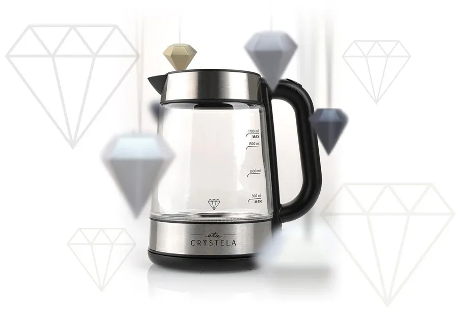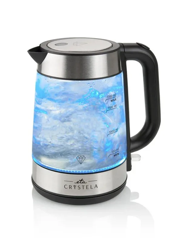 Cana fierbator din sticla ETA Crystela 6153, 1,7 L, 2200 W, iluminare LED albastra