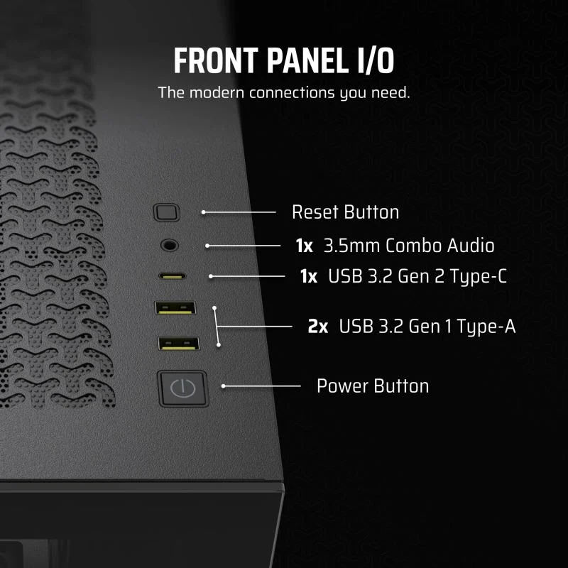 Carcasa CORSAIR 3500X Mid Tower NEGRU, Tempered Glass, Sloturi Expansiune 7 orizontal sau 4 vertical, Drive Bays: 2×3.5″ 2×2.5″, Format Placa De Baza Suportat: MIni-ITX, Micro-ATX, ATX, E-ATX, Lungime Maxima Placa Video: 410mm, Inaltime Maxima Cooler Procesor: 170mm