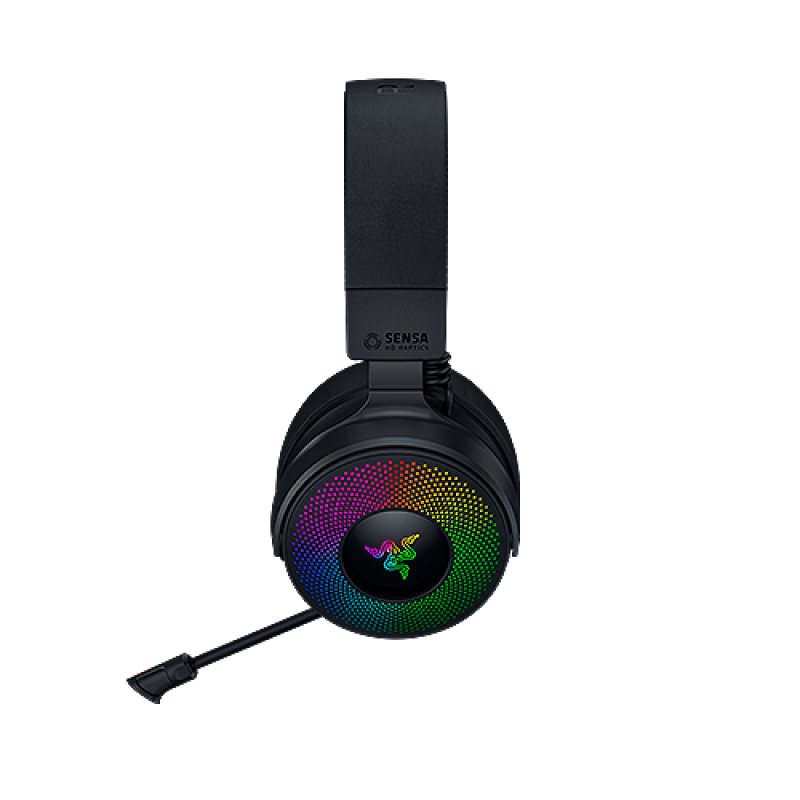 Casti Razer Kraken V4 Pro, wireless, bluetooth, cu fir, frecventa raspuns 20 Hz – 28 kHz, conectivitate wireless: 2.4 GHz Wireless prin OLED Control Hub sau Bluetooth 5.3, cu fir USB-A sau 3.5mm, microfon retractabil Razer™ HyperClear Super Wideband Mic, iluminare Razer Chroma™ RGB, autonomie pana la 50h (feedback haptic si iluminare oprite, mod wireless), autonomie pana la 45h (feedback haptic si iluminare oprite, mod wireless & bluetooth activate simultan), autonomie pana la 13h (feedback haptic si iluminare pornite, conexiune wireless), negru
