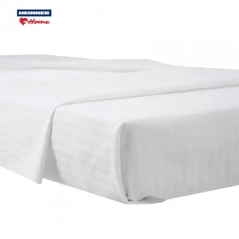 Cearceaf de pat plat hotel, alb cu dungi satinate de 1 cm