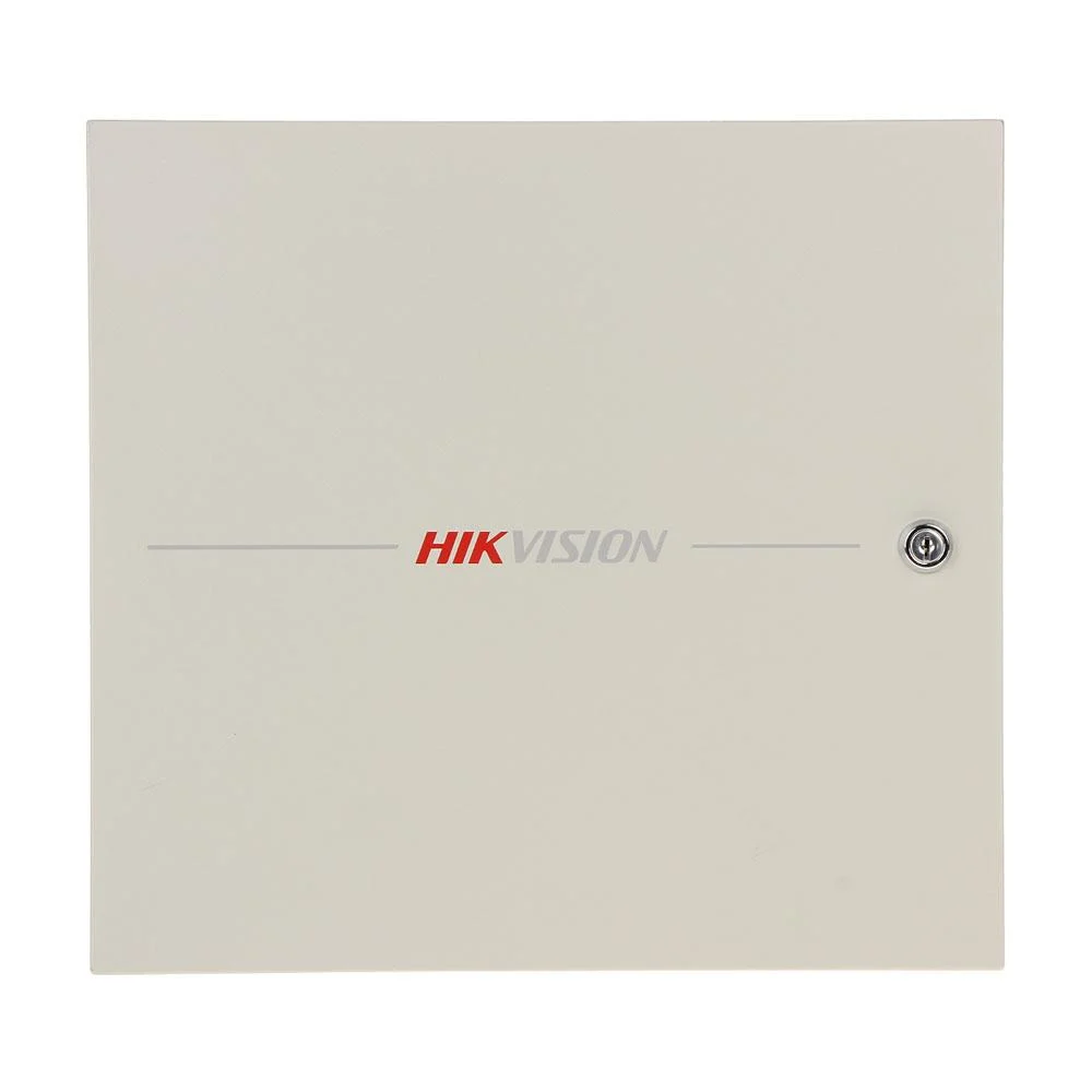 Centrala control access Hikvision DS-K2601T, pentru 1 usa bidirectionala (2 x cititoare Wiegand sau 2 x cititoare RS-485), capacitate de stocare: 100,000 cartele si 300,000 evenimente, comunicare: TCP/IP, RS-485, Wiegand (W26/W34), EHome 5.0, si protocol ISAPI, Alarm input × 4,door contact × 1, exit button × 1, case input × 2, tamper alarm × 1, Lock relay × 1, alarm relay ×2, multi-door interlock function, anti-passback function, multiple authentications function, open door with first card function, super card and super password function, dimensiuni: 373 mm × 345 mm × 98 mm
