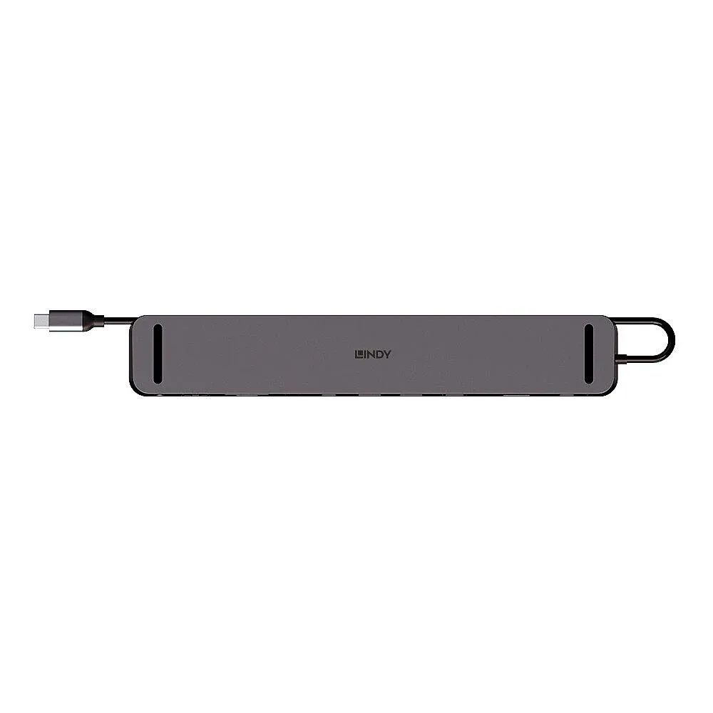 Statie docking Lindy DST-Mini XT 810, interfata USB Type C to 1x HDMI / 1x DP/ 2x USB Type A / 2x USB Type C / 1x RJ45 / 1x SD / 1x microSD / 1x 3.5mm Audio, latime de banda suportata 10 Gbps, 10/100/1000 Mbps, rezolutie maxima iesire 8K 7680×4320 30Hz, chipset: VMM6210, VL822, GL3510, GL3224, RTL8153B, ALC4032, VL102, negru
