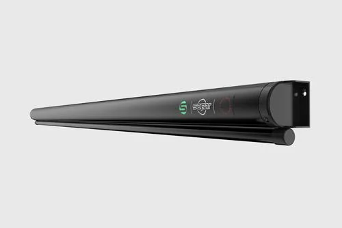 Ecran de proiectie manual, cu prindere in tavan/perete Sopar Slim, format 1:1, suprafata de proiectie 153×153 cm, diagonala 86 inch, unghi de vizionare 150°, tip panza alba (fata) alba (spate), din fier