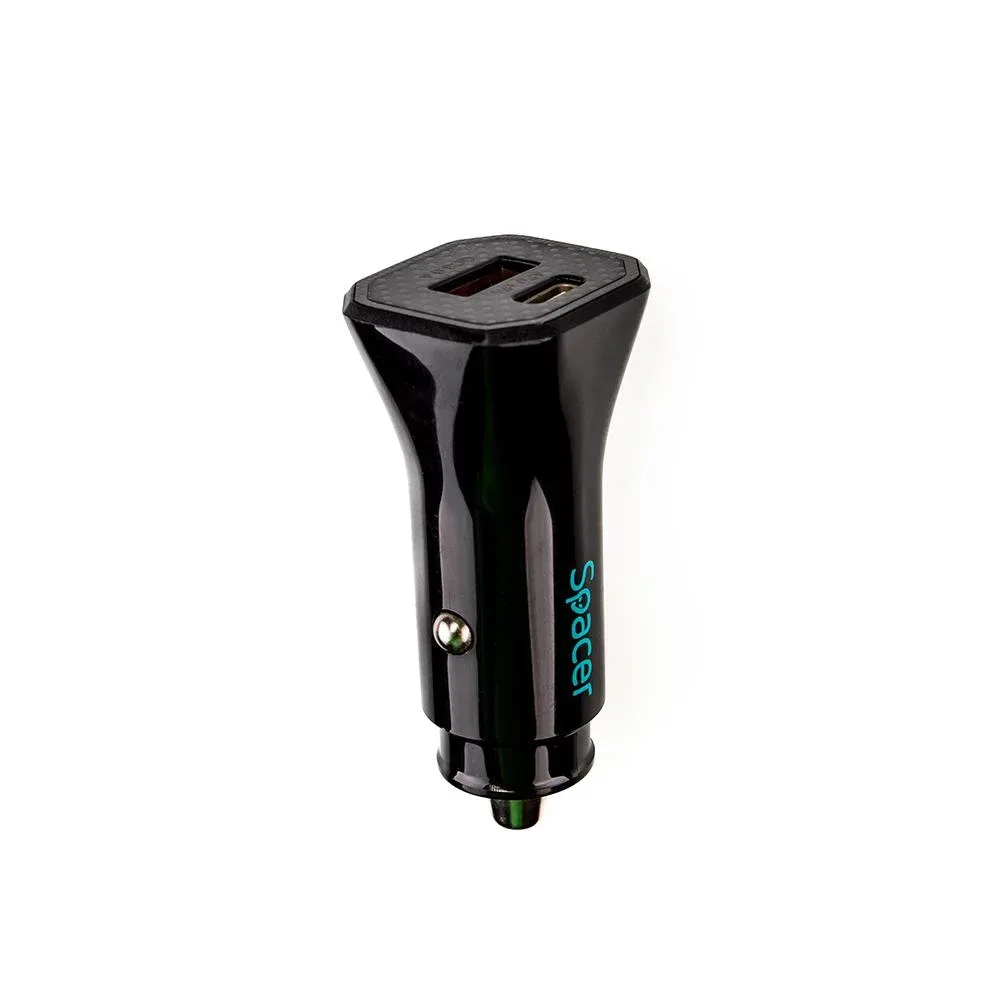 Incarcator auto Spacer Fast Charge 12W, 5V/2.4A max, putere 12W, 1 x USB + 1 x USB Type-C, pt. bricheta auto, negru