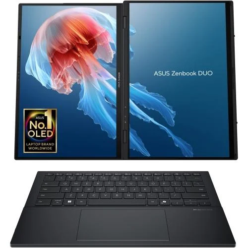 Laptop Asus Zenbook Duo, UX8406CA-QL118X, 14.0-inch, FHD (1920 x 1200)OLED 16:10 aspect ratio, Intel® Core™ Ultra 7 Processor 255H (24M Cache,up to 5.10 GHz), 32GB LPDDR5X on board, 1TB M.2 NVMe™ PCIe® 4.0 SSD,120Hz refresh rate, 400nits, Glossy display, 1080p FHD camera, Wi-Fi7(802.11be) (Tri-band)2*2 + Bluetooth® 5.4 Wireless Card (*Bluetooth®version may change with OS version different.), I/O Ports:1x HDMI 2.1TMDS, 1x 3.5mm Combo Audio Jack,1x USB 3.2 Gen 1 Type-A (data speed upto 5Gbps), 2x Thunderbolt™ 4 with support for display / power delivery(data speed up to 40Gbps), Smart Amp Technology, Built-in speaker,Built-in array microphone, harman/kardon (Premium), Soft Keyboard,Dimension: 31.35 x 21.79 x 1.46 ~ 1.99 cm, Weight: 1.39 kg, IR webcamwith Windows Hello support, McAfee® 30 days free trial, Mg-Al, BasaltGray, Windows 11 Pro – Asus recommends Windows 11 Pro for business, 3Y