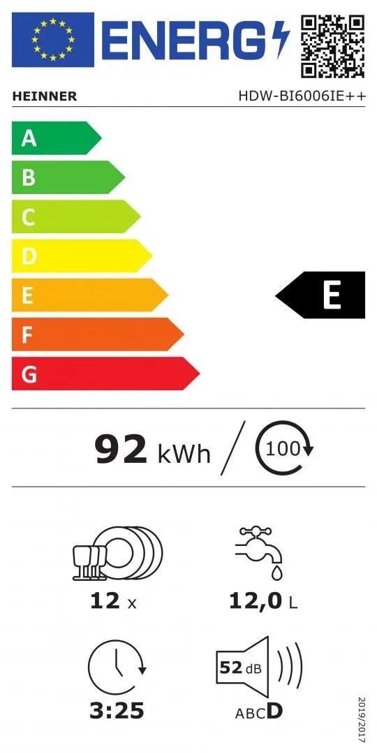 MASINA DE SPALAT VASE INCORPORABILA HEINNER HDW-BI6006IE++