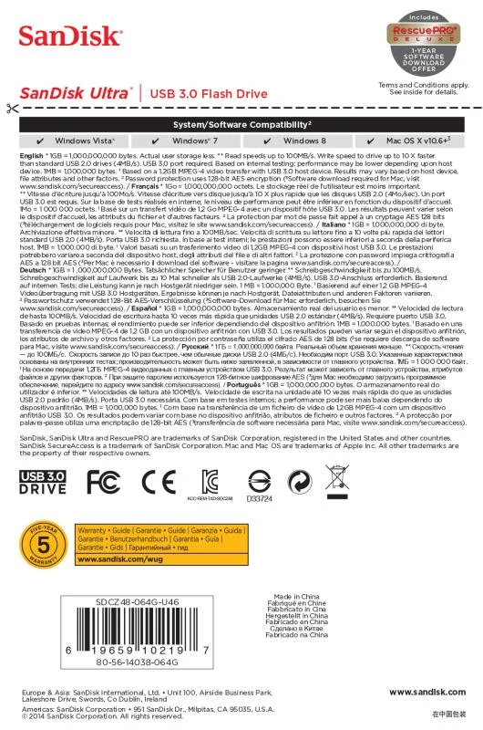 Memorie USB Flash Drive SanDisk Ultra, 64GB, USB 3.0