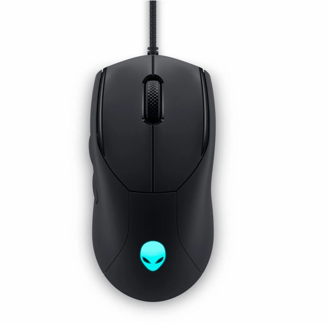Dell ALIENWARE WIRED GAMING MOUSE AW320M, CONNECTIVITY: USB Wired, GAMING POLLING: 1000Hz, SENSOR MAX SENSITIVITY: Native 19,000 DPI, SENSOR MAX SPEED: 400 IPS, SENSOR MAX ACCELERATION: 50G, NUMBER OF BUTTONS: 6 Fully Programmable buttons, arranged, CLICK LIFESPAN: 60 Million for L/R Buttons, LIGHTING: 1 Zone 16.8 Million RGB, AlienFX, CABLE TYPE: 2m Light Ultra-flexible Paracord Cable, COLORS: Black, KEYPLATE STRUCTURE: Mechanically-sprung keyplates, FEATURES: 5 on-the- fly DPI settings, Auto-calibration, DIMENSIONS (W X L X H): 62.4 x 124.8 x 38 mm, WEIGHT: 74g, 2y limited warranty