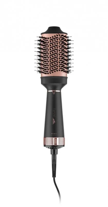 Consum de energie 1100-1300 W Functie de ionizare – pentru stralucire si efect antistatic 3 debite de aer 3 trepte de temperatura Bucla practica pentru agatat Protectie la supraincalzire pentru o operare sigura Forma si design practic Lungimea cablului de alimentare 1,7 m Nivel de zgomot 74 dB(A) re 1pW Tensiune de alimentare 115 V / 220 V Dimensiunea capatului activ: 12 x 4 x 8 cm Nu mai trebuie sa folositi uscator de par si o perie rotunda clasica atunci cand va coafati. Un singur dispozitiv sub forma unei perii cu aer cald este mai mult decat suficient pentru a obtine volumul dorit, usor si confortabil. Peria cu aer cald din colectia eleganta ETA Fenite Black Editon este destinata utilizarii cu parul usor umed. Acesta se usuca rapid si se adapteaza la forma dorita. Volumul foarte mare pe care il veti obtine cu usurinta va va entuziasma cu adevarat. Functia de ionizare asigura stralucire si catifelare. Ionii negativi reduc in mod eficient formarea de electricitate statica si astfel ajuta la prevenirea incurcarii parului. Folosind comenzi simple puteti seta cu usurinta viteza si nivelul de temperatura pentru rezultate perfecte in functie de dorintele dumneavoastra. Alegeti o viteza de suflare scazuta pentru uscare blanda, viteza medie pentru uscare normala sau viteza ridicata pentru uscare rapida. Varful periei ramane permanent rece astfel incat manipularea acesteia este sigura si confortabila. Lungimea cablului de alimentare de 1,7 m ofera suficienta raza de actiune pentru o manipulare usoara. In husa de calatorie puteti impacheta cu usurinta peria sa o luati cu dumneavoastra la drum. Cu ETA Fenite 9322 90000 coafarea zilnica devine o distractie fara sa mai fie nevoie sa ajungi la salon. Peria este ideala pentru a usca si modela parul sau pentru a-i oferi volum coafurii tale. Parul tau va fi mai stralucitor si mai voluminos.