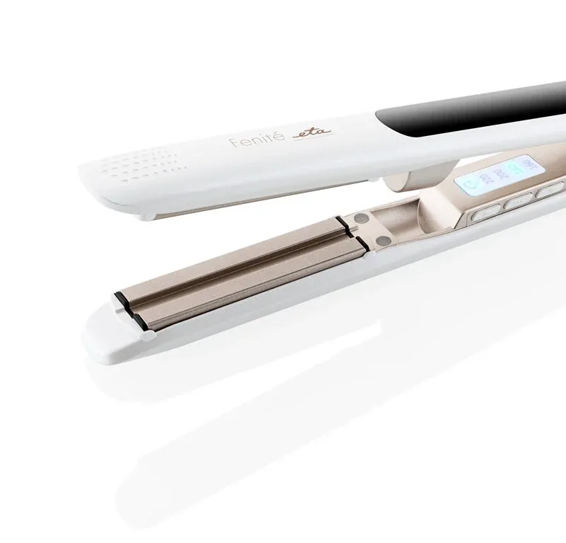 Fie ca ai parul mai scurt sau foarte lung cu ETA FENITE 3337 vei obtine o coafura incantatoare fara a vizita un salon de infrumusetare. Inca de la prima utilizare vei adora aceasta placa in design modern alb perlat care vine la pachet cu o husa practica de calatorie. Folositi abur pentru o coafare eficienta si rapida Datorita tehnologiei de eliberare treptata a keratinei si uleiului de argan, parul tau este protejat de deteriorare de fiecare data cand folosesti dispozitivul. ETA FENITE 3337 are o functie unica de calcare cu abur . Volumul rezervorului de 7,5 ml va ofera pana la 20 de minute de abur. Rezervorul este detasabil pentru umplere usoara. Lumini de semnalizare informeaza de functionarea dispozitivului – cand indicatorul clipeste placile se incalzesc si atunci cand este aprins continuu temperatura setata a fost atinsa. Cablul de alimentare rotativ faciliteaza manevrarea usoara in timpul utilizarii. Bucla de agatare este foarte practica pentru racire sau depozitare, astfel incat aveti intotdeauna apratul la indemana. Pentru o depozitare sigura, puteti bloca placile in pozitia inchisa. Manevrare usoara cu rezultate perfecte Incalzirea rapida a placilor va permite sa incepeti coafarea parului aproape imediat. Suprafata din ceramica-turmalina a placilor de 25 x 90,5 mm este foarte blanda cu parul si adera perfect la acesta. In intervalul de temperatura de la 160 la 220 ° C se pot indrepta toate tipurile de par. Lungimea cablului de alimentare rotativ de 1,7 m va permite o manevrare usoara. Pentru o depozitare mai usoara, este utila optiunea de blocare a placilor in pozitia inchisa. Deseori uiti sa deconectati aparatul de indreptat parul si sa pleci din casa ? ETA FENITE este echipat cu o functie de siguranta care opreste automat aparatul 30 de minute de inactivitate,. Desigur este echipat si cu o protectie impotriva supraincalzirii. Totul pentru linistea si siguranta ta Sistemul PTC incalzeste placile in cateva momente si mentine automat temperatura constanta. Placile cu suprafata ceramica adera perfect la par astfel incat sa indrepte suvitele rapid si eficient. Functionarea este semnalizata luminos de un afisaj LED clar. – Operare simpla si intretinere usoara – Comutator PORNIT / OPRIT – Cablu de alimentare pivotant – Bucla de agatare – Incalzire rapida a placilor – Protectie la supraincalzire – Posibilitatea de blocare a placilor in pozitie inchisa – Afisaj LED clar – Functie de siguranta pentru oprire automata dupa 30 de minute – Semnalizarea luminoasa de functionare si de atingere a temperaturii – Forma si design practice – Rezervor de apa detasabil pentru umplere usoara – Poate fi folosit impreuna cu o lotiune de par pentru a imbunatati calitatea parului si rezultatele coafurii – Lungimea cablului de alimentare 1,7 m Intervale de temperatura in functie de tipul de par – Temperatura scazuta (160 – 180 °C) – pentru parul fin, decolorat sau deteriorat – Temperatura medie (180 – 200 °C) – pentru par normal si ondulat – Temperatura ridicata (200 – 220 °C) – pentru par puternic, aspru si cret