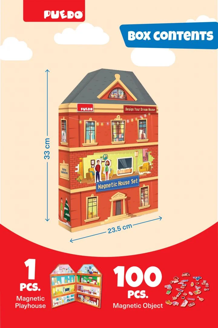Acesta este un joc magnetic, format dintr-o casa cu 8 camere, special conceputa sub forma unei carti magnetizate din material din spuma si 100 de obiecte diferite de mobilier si obiecte de uz casnic, magnetizate. Imaginatia copiilor va ramane activa ore intregi.