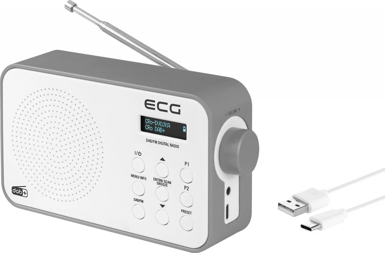 Radio portabil ECG RD 110 DAB cu tuner DAB+ si FM, alb, 1,2 W, memorie 30 de posturi