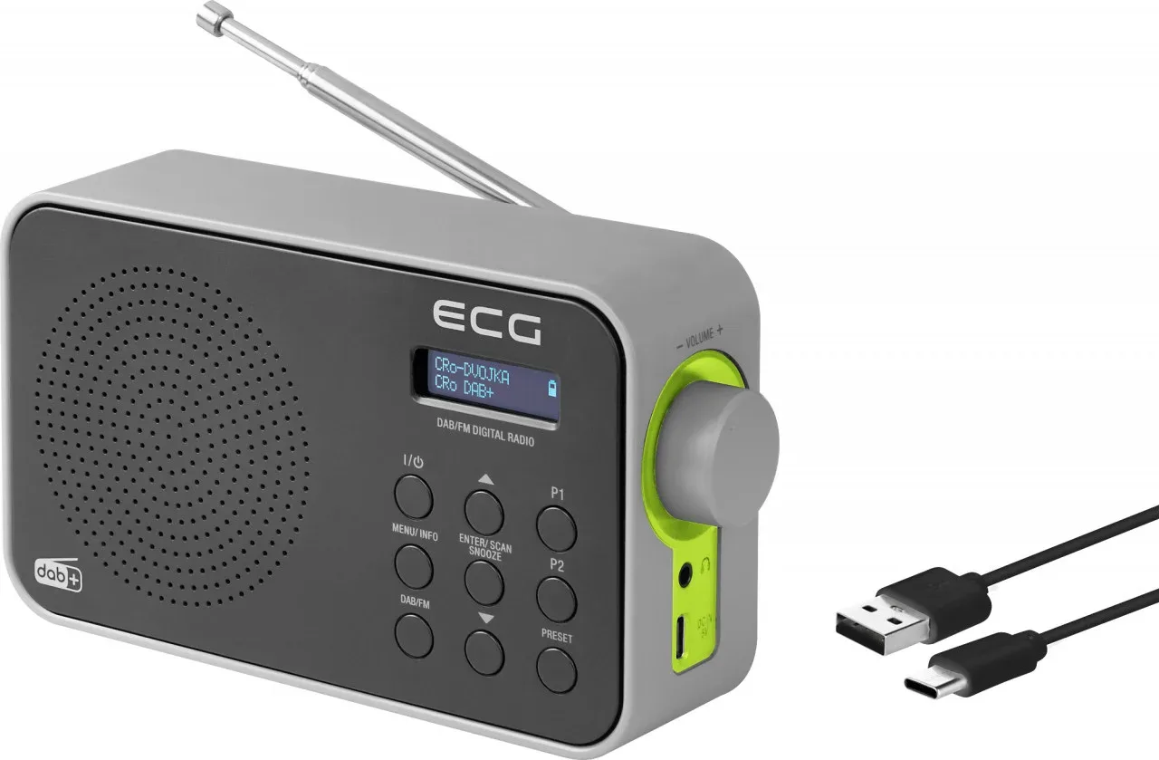 Putere de iesire 1,2 W Tuner DAB+ / FM Display LCD Matrix (33 x10 mm) 30 presetari FM / 30 presetari DAB+ Frecventa DAB: 174 – 240 MHz Frecventa FM: 87,5 – 108 MHz Antena telescopica Ceas si alarma cu semnal sonor sau radio Functionare cu alimentare de la priza (adaptor neinclus) sau cu baterii (neincluse) Conectori intrare: USB-C pentru incarcare (inclus), iesire pentru casti Compact si puternic, receptioneaza FM si DAB+ Tunerul incorporat va permite sa ascultati nu numai pe frecventele FM ci si pe cele digitale. In plus, puteti memora pana la 30 de posturi pe ambele variante. Frecventele DAB + pot fi receptionate in intervalul 174-240 MHz si cele FM de la 87,5 la 108 MHz . Panoul de control este foarte intuitiv si datorita butoanelor, poate fi utilizat de oricine indiferent de varsta. Pe partea laterala a dispozitivului un selector rotativ mare permite reglarea usoara a volumului. Alimentare electrica: – prin USB, cablu USB-C (inclus) – cu baterii 4 × 1,5 V / tip AA) (nu sunt incluse) – cu adaptor: 100–240 V AC, 50/60 Hz, max. 0,3 A, Iesire: DC 5 V, 1 A, 5,0 W (nu este inclus) Aparatul poate fi alimentat asadar de la retea (alimentatorul nu este inclus) si de la baterii 4 x AA (nu sunt incluse). In pachet vei gasi un cablu USB-C foarte util pentru alimentare. Echipament bogat Radioul RD 110 DAB de la ECG este echipat cu functii pe care fiecare utilizator le va aprecia. Fie ca esti intr-o cabana, intr-un atelier, intr-un parc, la pescuit sau in padure, poti asculta postul tau de radio preferat. Datorita receptorului DAB+ , va puteti bucura de un sunet de exceptie, fara zgomot de fond. Datorita afisajului LCD Matrix, puteti acorda cu usurinta toate posturile disponibile. In cazul difuzarii pe frecventa DAB+, informatii suplimentare vor fi afisate pe acest ecran. Functia practica de alarma va fi cu siguranta utila de multe ori. Puteti seta alarma cu semnal sonor sau radio in functie de preferinte. Postul tau favorit te va trezi si te va binedispune imediat. De fiecare data cand apasati butonul puteti amana alarma pentru cateva minute. Totusi, pana la urma va trebui sa te ridici din pat, dar macar vei avea parte de o muzica frumoasa.
