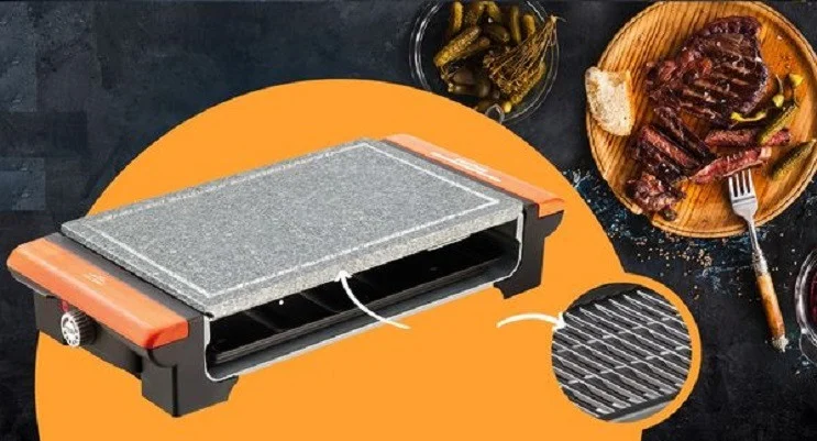 Grill-ul electric cu plita din piatra ETA VITAL 1162 te ajuta sa gatesti ceva sanatos, rapid si extrem de gustos. Poti prepara cu un efort minim carne de orice fel si legume, punand doar condimente si ierburi aromatice dupa bunul plac si realizezi mese rapide si delicioase atat pentru toti membrii familiei, cat si pentru prieteni. Accesibil si usor de folosit, aparatul este foarte util in orice bucatarie, pentru ca mancarea se prepara imediat si fara a fi nevoie de uleiul mai putin sanatos specific prepararii prin prajire. Datorita placilor detasabile, curatarea se realizeaza imediat si foarte eficient. Gratar in orice sezon Gratarul este o activitate populara, nu numai vara, care poate combina placut cu util – timpul petrecut cu prietenii (ideal in aer curat) si pregatirea mancarurilor delicioase in propria bucatarie. Daca va descurajeaza sa faceti un gratar clasic, cu lemne pentru ca emana mult fum, puteti opta pentru acest gratar electric. ETA VITAL 1162 este un ajutor remarcabil la prepararea carnii, a pestelui si a legumelor.Tot ce trebuie sa faceti este sa setati temperatura potrivita folosind termostatul frontal si sa selectati o placa adecvata. Puteti folosi piatra pentru un mod mai lent de preparare cum ar fi carnea prajita patrunsa foarte bune sau placa din fonta care este potrivita, de exemplu, pentru prepararea rapida a fripturilor „in sange”. Gratar fara fum neplacut Aparatul este echipat cu un indicator luminos si un control continuu al temperaturii. In plus, un sistem pentru scurgerea grasimii si a apei din alimente, va permite sa va bucurati de un gratar fara fum neplacut. Tava de apa detasabila impiedica arderea si uscarea alimentelor.