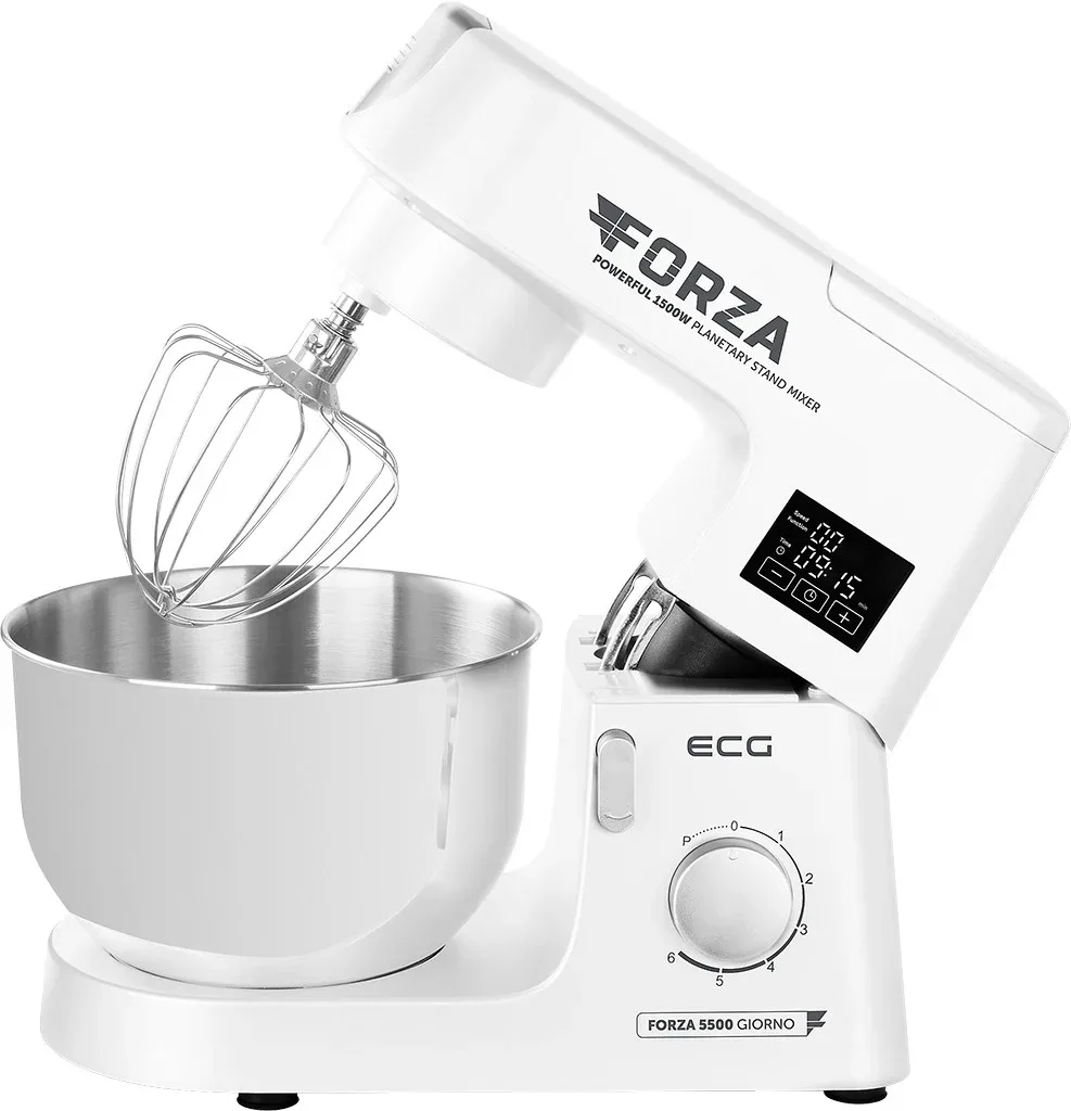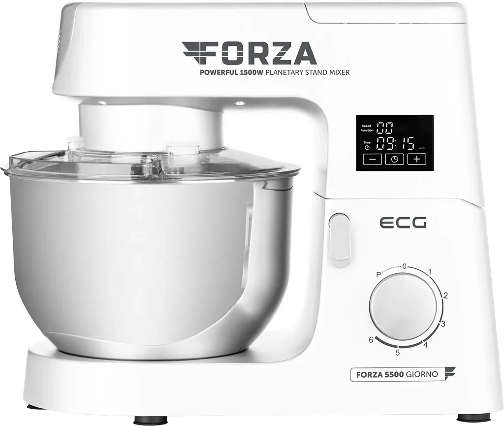 Robot de bucatarie ECG FORZA 5500 Giorno Bianco, 1500 W, 6,5 litri, panou de control tactil, sistem de amestecare planetar