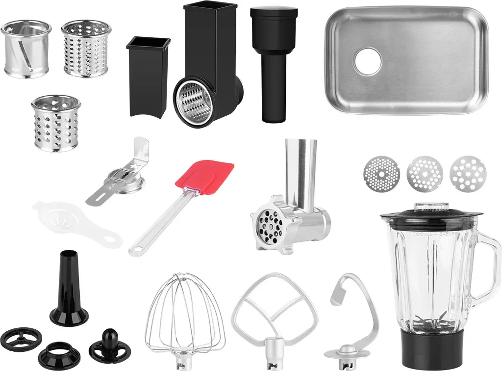 Vas de capacitate mare, din otel inoxidabil cu volumul de 6,5 litri Motor puternic (AC) 1500 W Angrenaje din metal de inalta calitate Sistem de amestecare planetar pentru mixarea perfecta a tuturor ingredientelor (acest sistem consta in miscari circulare ale telului in jurul propriei axe, precum si in jurul vasului pe interior) Controlul vitezei cu pornire lina, in 6 trepte Mod impuls Afisaj LED clar Panou de control tactil Posibilitatea de a seta timpul de functionare pentru un rezultat precis Functionare silentioasa (68 dB) Masina de tocat carne Forme de taiere pentru prajituri Razatoare Blender cu lame din otel inoxidabil de inalta calitate si recipient din sticla de 1,5 l Instrument de presare Corp robust din plastic ABS cu antivibratii Mecanism de ridicare cu autoblocare Picioare antiderapante prevazute cu ventuze Lungime cablu de alimentare 1.15 m Un ajutor de nadejde in bucatarie Bucataria ta este un mediu in care te simti ca pestele in apa? Descopera robotul multifunctional de bucatarie ECG FORZA 5500 Giorno si poarta arta culinara un pas mai departe. Datorita gamei largi de accesorii, acest aparat va va ajuta cand framantati aluatul, tocati carnea si chiar atunci cand preparati frisca. Indiferent daca va place sa gatiti sau preferati sa coaceti, munca dumneavoastra va devein mult mai usoara. Avantajele robotului constau intr-un design robust, un bol mare de amestecare din otel inoxidabil (volum 6,5 l) si un motor fiabil si puternic de 1500 W. Acesta este un aparat avansat – lansat pe piata din Cehia in toamna anului 2022 – incat orice iubitor de gastronomie ar trebui sa se indragosteasca de el. Accesorii pentru framantare Carlig pentru framantare Tel pentru amestecare Paleta pentru amestecare Accesorii blender: Recipient din sticla Capac Impingator Masina de tocat carne: Cutit Dispozitiv pentru tasare Disc de tocat fin cu orificii de 3 mm Disc de tocat mediu cu orificii de 5 mm Disc de tocat grosier cu orificii de 8 mm Palnie pentru carnati Accesoriu pentru Kibbe 6 forme pentru paste fainoase si prajituri Accesorii razatoare/feliere: Dispozitiv pentru tasare Razatoare fina Razatoare grosiera Dispozitiv pentru feliere Accesoriu pentru produse de cofetarie Forma de taiere pentru prajituri Maiestrie la superlativ Daca esti unul dintre acei bucatari ale caror echipamente trebuie sa fie intotdeauna perfecte, robotul nostru este prezent aici si acum doar pentru tine. ECG FORZA 5500 Giorno cu siguranta nu va va dezamagi – motorul este fabricat din cupru pur, angrenajele sunt integral metalice iar calitatea inalta este garantata si de corpul sau robust din plastic ABS care elimina vibratiile nedorite. Adaugati la toate acestea picioarele antiderapante prevazute cu ventuze care asigura o pozitionare foarte stabila si aveti un aparat care indeplineste cele mai inalte cerinte. Amesteca perfect toate ingredientele Pregatiti un desert sau o alta delicatesa pentru familia dumneavoastra ? Adaugati ingredientele pentru aluat in vasul din otel inoxidabil si lasati robotul sa le amestece fara griji. Datorita rotatiei planetare toate ingredientele se vor mixa perfect. Atasamentele se rotesc in jurul propriilor axe si in acelasi timp in jurul peretelui interior al vasului. In plus, robotul ofera control variabil al rotatiei cu pornire lina si 6 viteze astfel incat sa ii puteti adapta functionarea la cerintele retetei pe care o faceti. Pe deasupra, puteti utiliza si modul special de Puls pentru rezultate rapide maxime. Operare usoara Oricine poate utiliza cu usurinta robotul de bucatarie ECG FORZA 5500 Giorno . Este controlat convenabil cu ajutorul selectorului de viteza rotativ. Pentru a seta alte functii, de exemplu un anumit timp de amestecare, se foloseste un panou tactil intuitiv completat de un afisaj LED clar . Functia de cronometru este de asemenea utila deoarece puteti seta timpul exact de functionare a robotului. Cand, de exemplu, pregatiti frisca, nu trebuie sa va faceti griji ca o bateti prea mult sau prea putin, pur si simplu setati timpul optim si ati terminat in cel mai scurt timp. Framanta, bate, macina si amesteca Robotul de bucatarie ECG FORZA 5500 Giorno va va ajuta la multe activitati in procesul de preparare culinara. Gama sa de accesorii este cu adevarat impresionanta. Poti folosi carligul de framantare aluat, paleta si telul din otel inoxidabil. Aveti la dispozitie o masina de tocat carne cu 3 discuri inlocuibile pentru a toca diferite tipuri de carne, razatoare cu tambur si un taietor special pentru prajituri. Desigur, nu putem omite un blender clasic cu lame din otel inoxidabil de inalta calitate si bol de sticla cu volumul 1,5 l. Daca va place bucataria italiana, cu siguranta veti aprecia accesoriul suplimentar pentru paste (Pasta Maker) care se poate achizitiona separat.