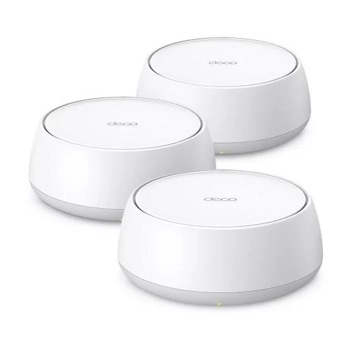 TP-LINK DECO BE25(3-PACK) Sistem Mesh WI-FI 7, BE5000, Dual-Band, standarde wireless: Wi-Fi 7 IEEE 802.11be/ax/ac/n/a 5 GHz, IEEE 802.11be/ax/n/b/g 2.4 GHz, viteze wireless: 5 GHz: 4324 Mbps (802.11be) 2.4 GHz: 688 Mbps (802.11be), Modul router, Mod Access Point, 4 x antene interne, AI-Driven Mesh, dimensiuni (150 × 150 × 62 mm)