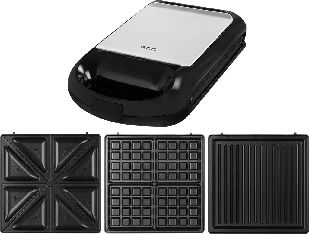 Sandwich maker grill ECG S 4310, 1200 W, 3 tipuri de placi interschimbabile 23 x 23 cm, unghi deschidere 105°