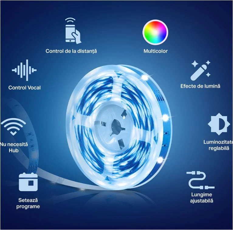 TP-Link Tapo L900-10 Smart light strip kit, 16 milioane culori, 2 x 5m, dimensiuni: 5000 × 10 × 1.6 mm fiecare, Wi-Fi Protocol: IEEE 802.11b/g/n, Frecventa: 2.4 GHz, intensitate reglabila.