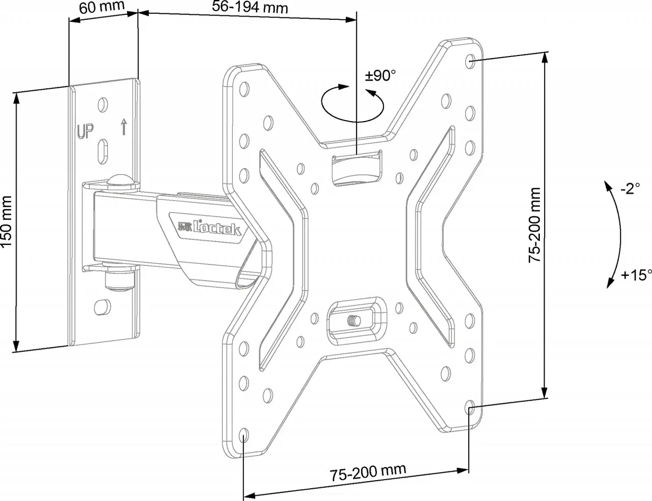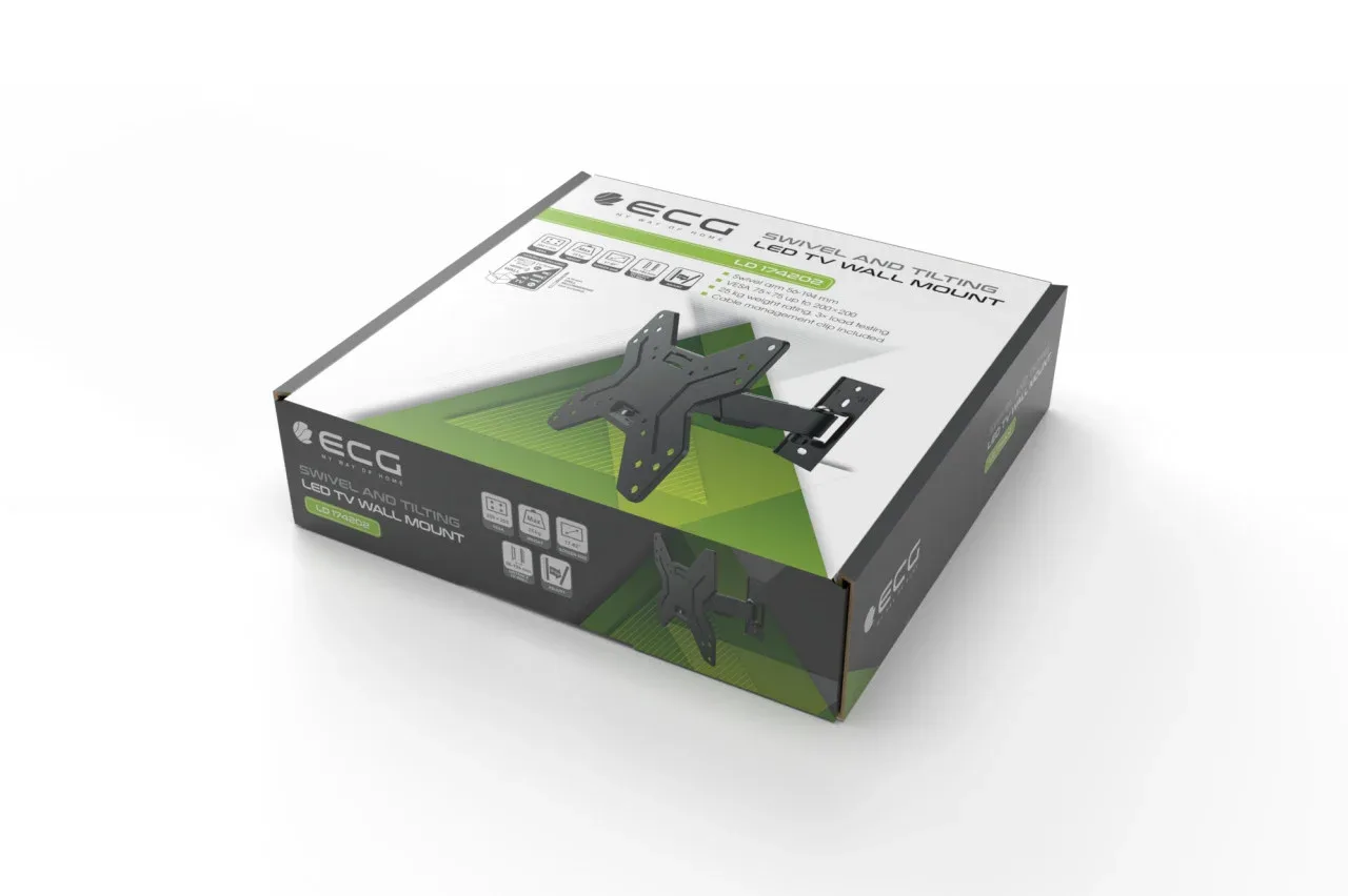 Suport TV de perete ECG LD 174202, 17″- 42″ (43 – 106 cm), rotire 90°, inclinare 2°-15°, 25 kg, VESA