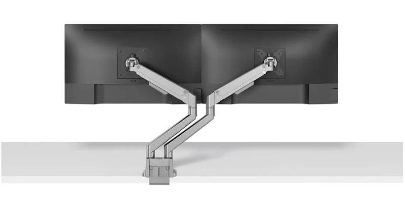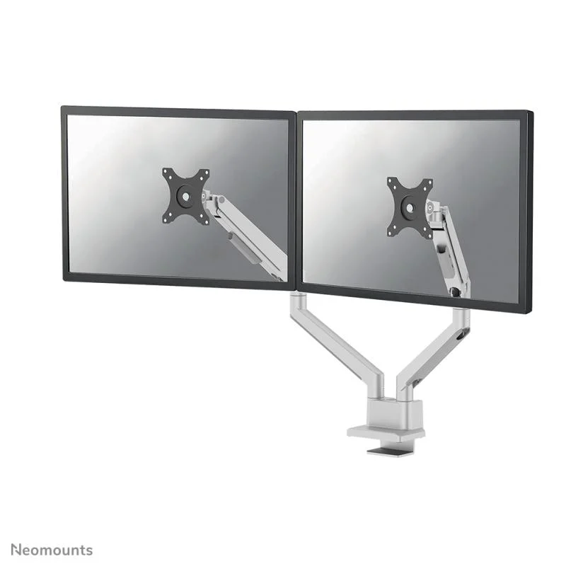 Brat dublu monitor Neomounts DS70-250SL2; pentru display-uri cu diagonale 17″-32″, sistem de prindere VESA 75×75~100×100, greutate maxima suportata 9 – per ecrankg, full motion, tilt +45°, swivel 90°, rotate 180°; gas spring; culoare argintiu. Garantie 5 ani