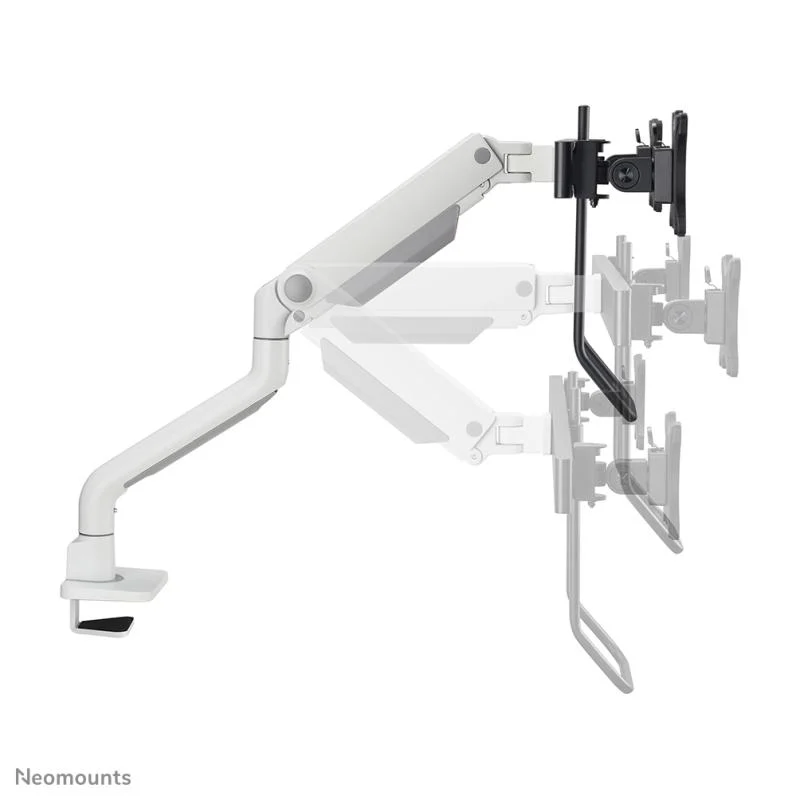 Brat dublu monitor Neomounts DS75S-950WH2; pentru display-uri cu diagonale 17″-32″, sistem de prindere VESA 75×75~100×100, greutate maxima suportata 8 – per ecrankg, full motion, tilt 60°, swivel 90°, rotate 180°, distanta fata de perete 204-741mm; gas spring; culoare alb. Garantie 5 ani