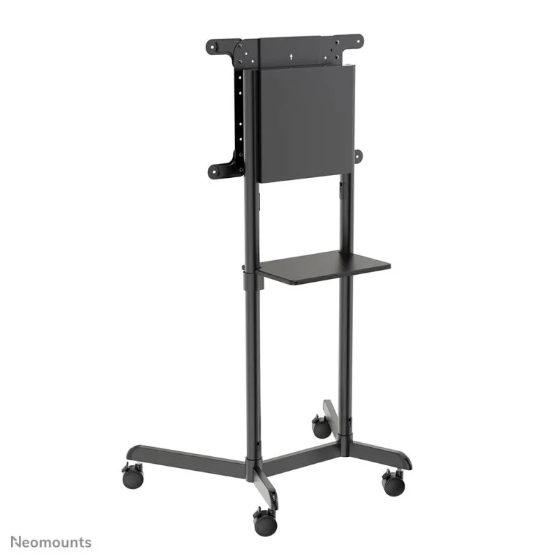 Stand mobil de podea Neomounts by Newstar, compatibil Samsung Flip 55″/65″, diagonale 37″-70″, VESA 200×200~600×400, max load 70kg, inclinatie 5°, rotatie 90° (landscape & portrait), inaltime fixa, polita AV, management cabluri, 2 stalpi, dimensiuni 920x702x1595mm, culoare negru, garantie 5 ani