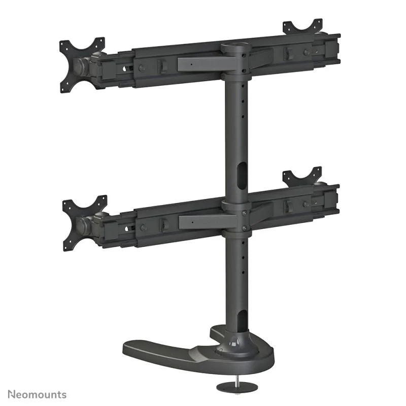Suport cvadruplu monitor de birou Neomounts FPMA-D700DD4; pentru display-uri cu diagonale 19″-30″, sistem de prindere VESA 75×75~100×100, greutate maxima suportata 8kg – per ecran, full motion, tilt +180°, swivel +180°, rotate +360°; inaltime reglabila manual 240-700mm; culoare negru. Garantie 5 ani