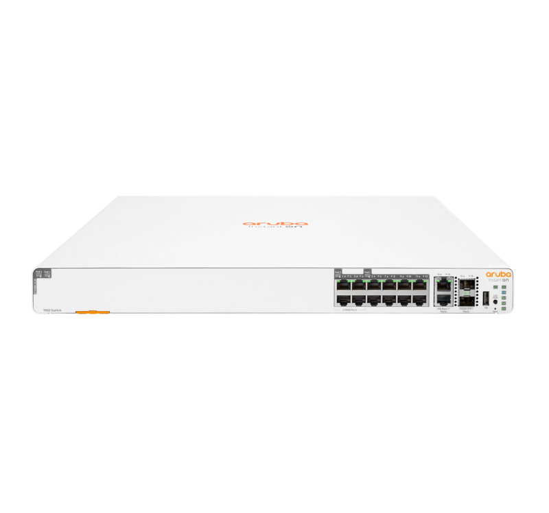 - The Networking Instant On 1960 aggregation switches comes with twelve 10 GBase-T and four SFP+ ports, providing 10 G connectivity to servers, network storage devices and access switches alike.