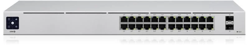 Ubiquiti UniFi Switch, USW-24-POE, 802.3at PoE Gigabit Switches with SFP, Auto-Sensing IEEE 802.3af/at PoE, SFP Ports for Gigabit Fiber Connectivity, Fanless, Silent Thermal Cooling, 24 RJ45 ports with 2 SFP ports.