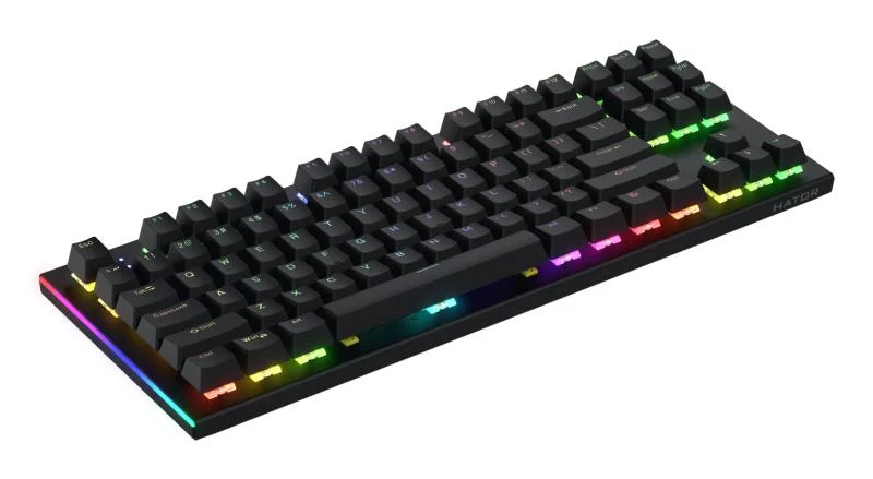 Tastatura mecanica cu fir Hator Gravity X TKL conectivitate USB, polling rate 1000Hz, iluminare RGB cu functia de a customiza fiecare tasta individual, tip switch HATOR Aurum Orange Linear rev.2.0, durata de viata switch 70M de clickuri, material taste ABS, profil OEM, negru