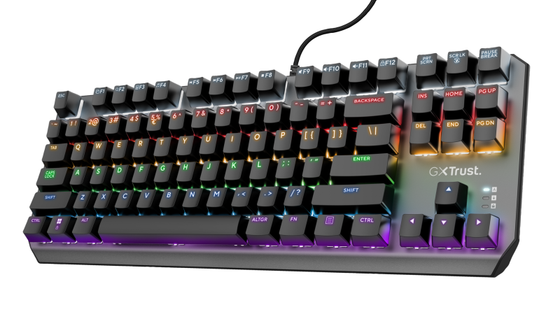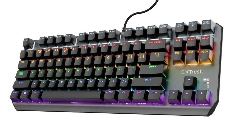 Tastatura Trust GXT834 Callaz Tenkeyless cu fir mecanica, conexiune USB-A male 2.0, switch type linear, numar taste 87, iluminare LED negru