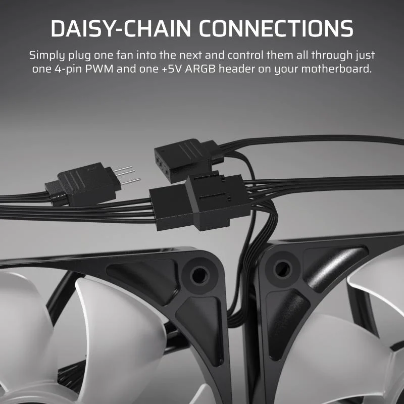 Ventilatoare Carcasa CORSAIR RS120 3x120mm ARGB ALB, viteza 0.420-2100 RPM +/- 10%, Airflow: 13.3-72.8 CFM, Presiune Statica: 0.2-4.15 mm-H2O, Nivel de zgomot: 10-36dBA